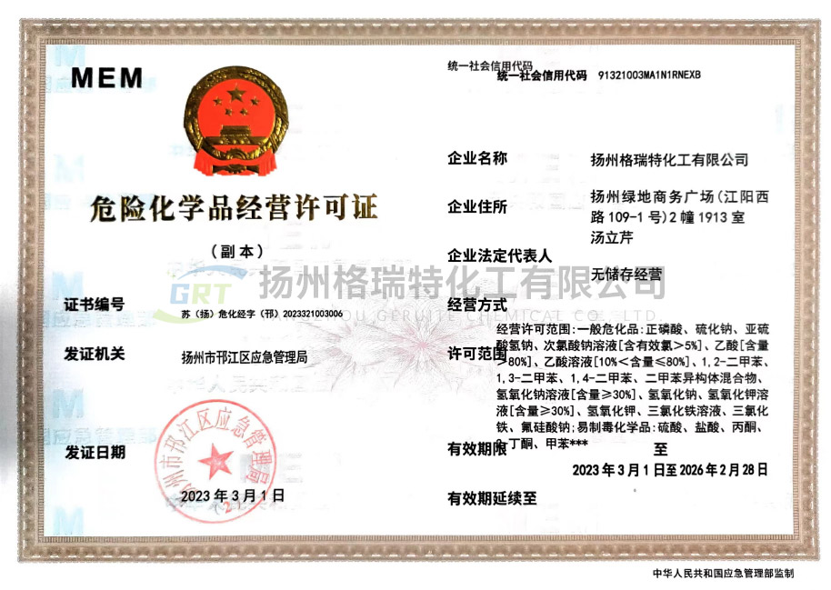 揚(yáng)州格瑞特化工有限公司生產(chǎn)工廠坐落于江蘇省海安縣胡集工業(yè)園區(qū)和海安精細(xì)化工工業(yè)園??偣境闪⒂?999年,是集科、工、貿(mào)為一體的現(xiàn)代化生產(chǎn)型企業(yè)。專業(yè)致力于水處理劑、紡織印染助劑、化纖油劑等產(chǎn)品的科研、開發(fā)、生產(chǎn)和銷售??偣菊嫉孛娣e40000m,建有現(xiàn)代化標(biāo)準(zhǔn)廠房,擁有先進(jìn)的生產(chǎn)設(shè)備。年產(chǎn)各類水處理劑系列產(chǎn)品12000噸,紡織印染助劑5000噸,產(chǎn)品12個(gè)系列40多個(gè)品種??偣咀⒅丶夹g(shù)投入,設(shè)立產(chǎn)品研發(fā)中心和環(huán)保運(yùn)營中心,聘請(qǐng)了多位專家為公司技術(shù)顧問,并和多個(gè)重點(diǎn)院校建立了長期技術(shù)合作開發(fā)關(guān)系,是南通大學(xué)、江南大學(xué)、南京工業(yè)大學(xué)產(chǎn)學(xué)研基地。